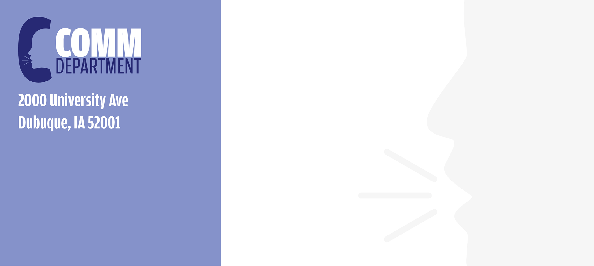 The primary objective of this assignment was to improve logo design skills for students in the class. Our professor used the Communications Department at the University as our client. The task was to create 3 logo designs. Additionally, we were assigned to create stationery designs to complement to logo. This consisted of a letterhead, business card, and an envelope design.